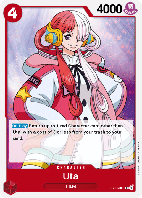 Detalles de la carta Rareza: R Numero: OP01-004 Color: Rojo Tipo de carta: Personaje